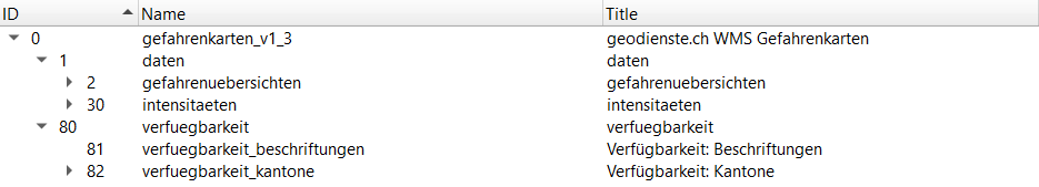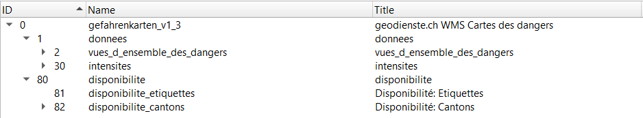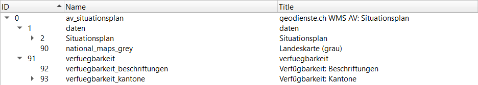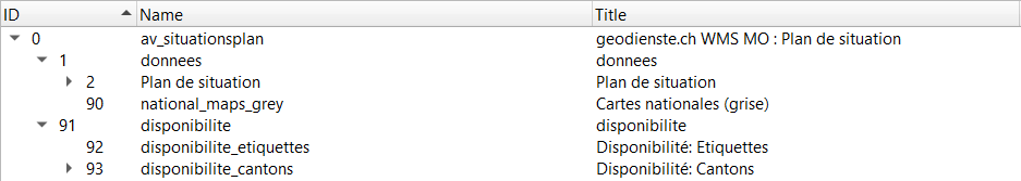 Le 09.03.2022, les structures des couches des services WMS sur geodienste.ch seront adaptées. A cette occasion, toutes les offres seront complétées par les groupes "Données" et "Disponibilité". Les groupes et les couches préexistants seront déplacés dans le nouveau groupe "Données". Le deuxième nouveau groupe "Disponibilité" contient les couches "Disponibilité : inscription" et "Disponibilité : cantons".